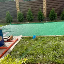 - материалы: Праймер-РК (1К), ПУ-клей для резиновой крошки (1К), Резиновая крошка (малахит);